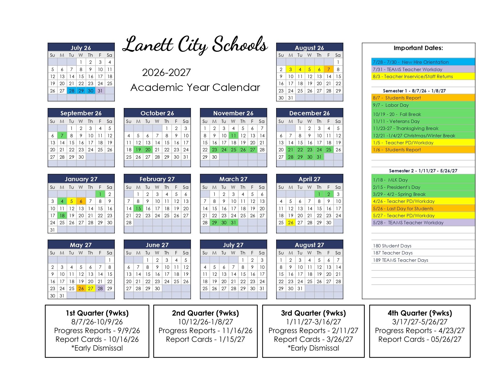 Blackett Public Schools Calendar 2026-2027