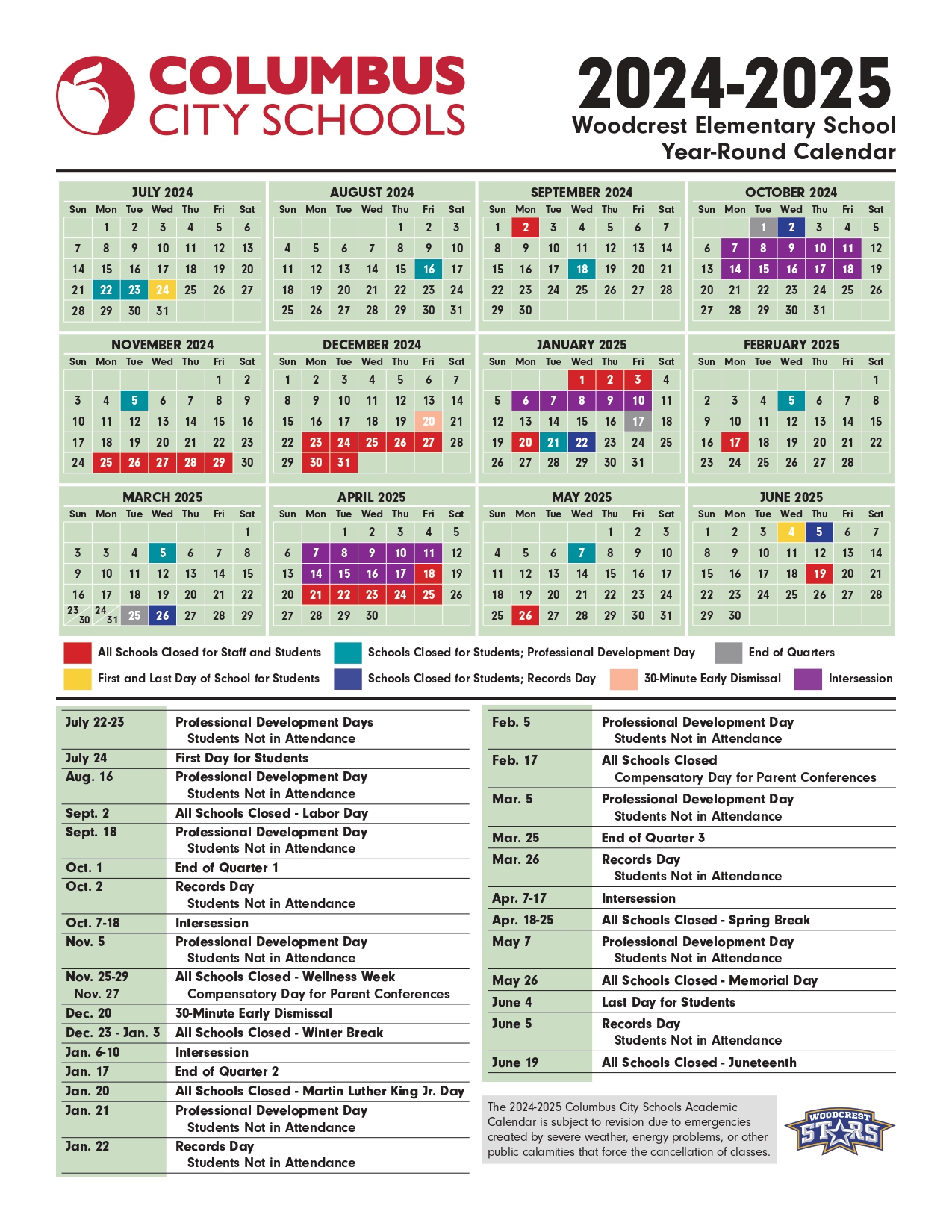 The Columbus City Schools Calendar is designed to support students in achieving their academic and personal goals. By providing a well-structured schedule with important breaks, the school ensures that students have time to study, participate in various activities, and rest.